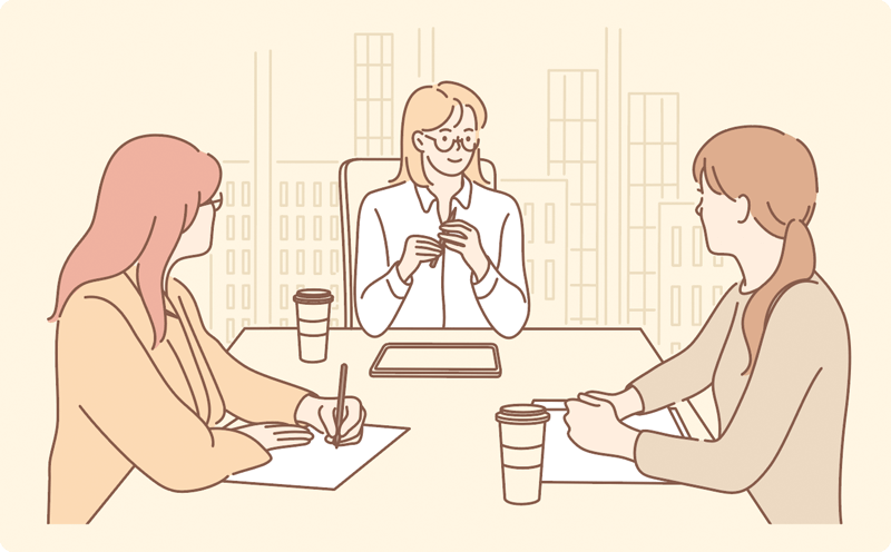 コンサルタントからアドバイスをもらいながら、